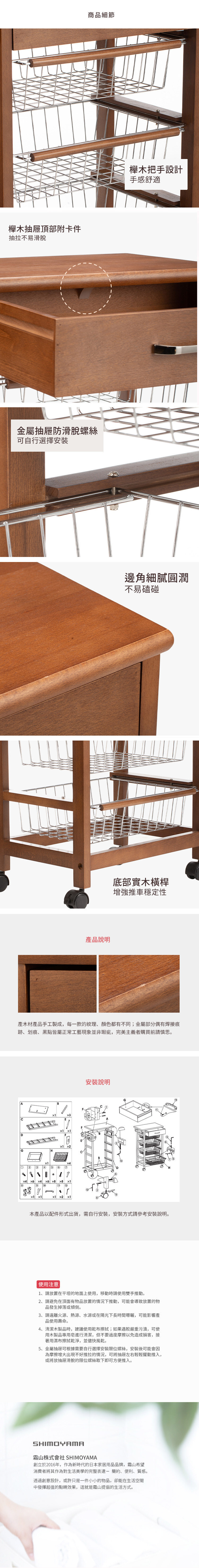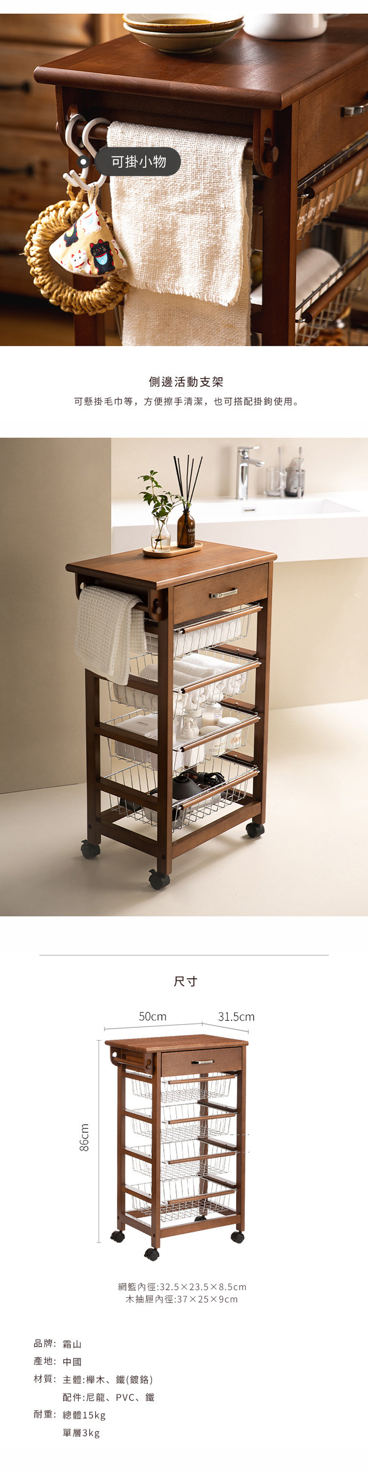 尺寸:[主體]寬50×深31.5×高86cm、[網籃內徑]寬32.5×深23.5×高8.5cm、[木抽屜內徑]寬37×深25×高9cm