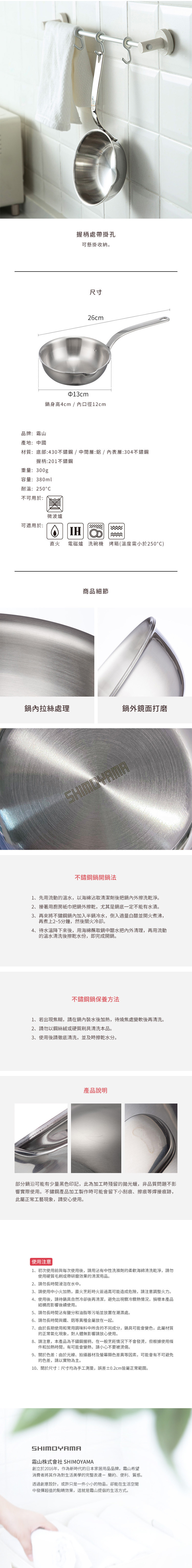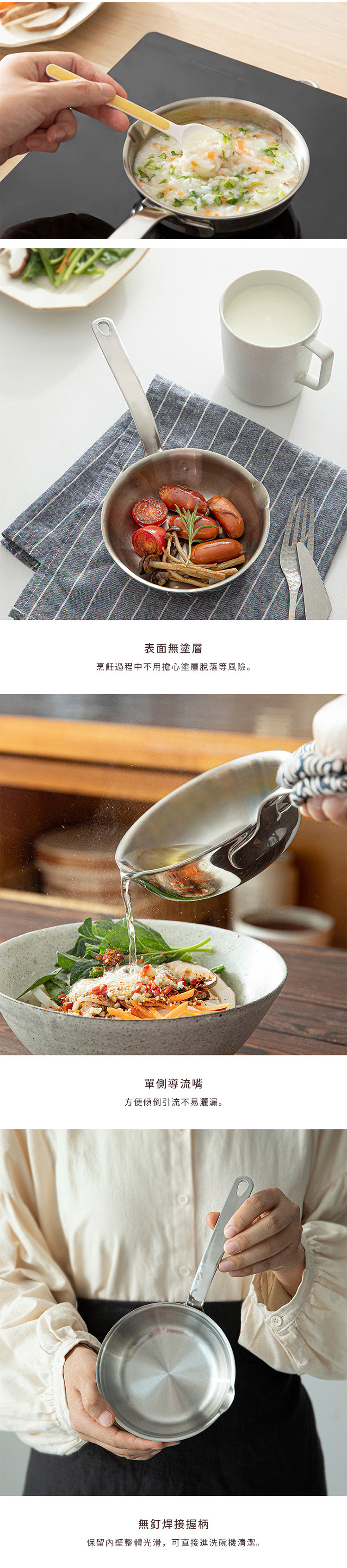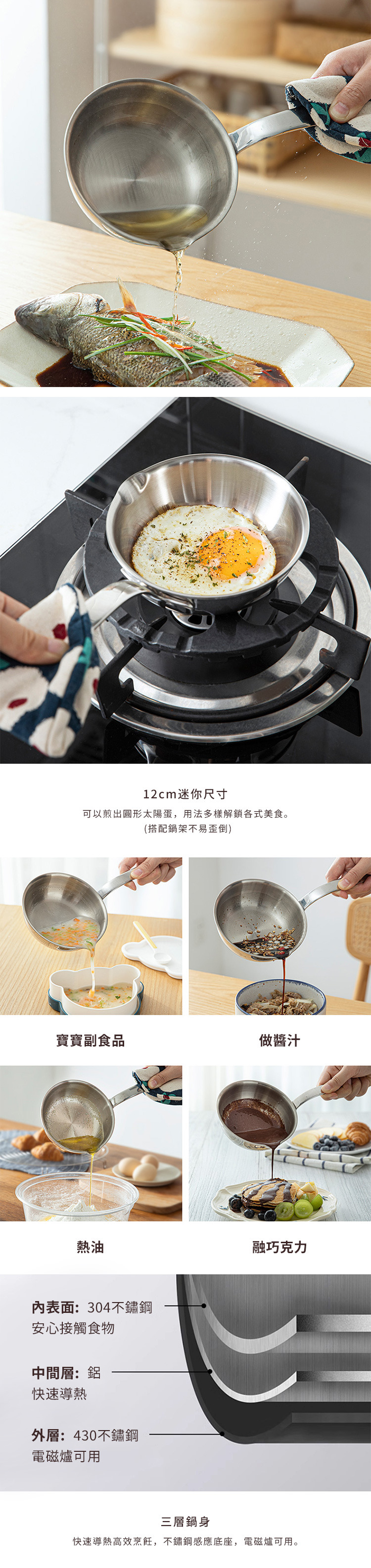 材質:[底部]430不鏽鋼、[中間層]鋁、[內表層]304不鏽鋼、[握柄]201不鏽鋼
