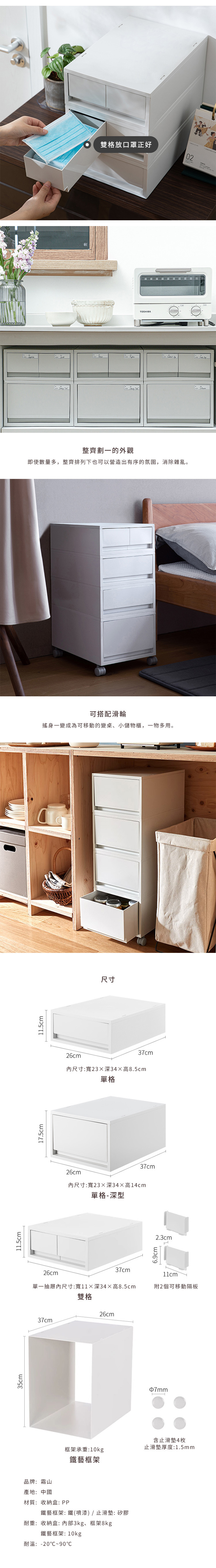 材質:[抽屜盒]PP、[鐵藝框架]鐵(噴漆)、[止滑墊]矽膠