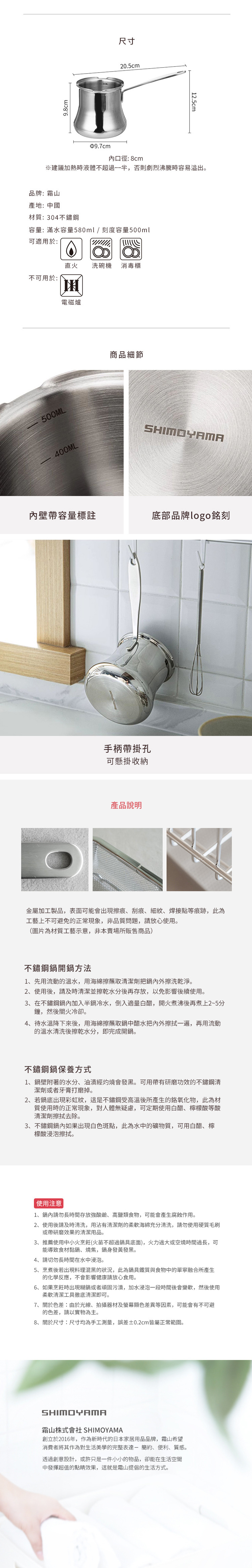 尺寸:長(含手柄)20.5cm×高12.5cm、[鍋底直徑]9.7cm、[內口徑]8cm