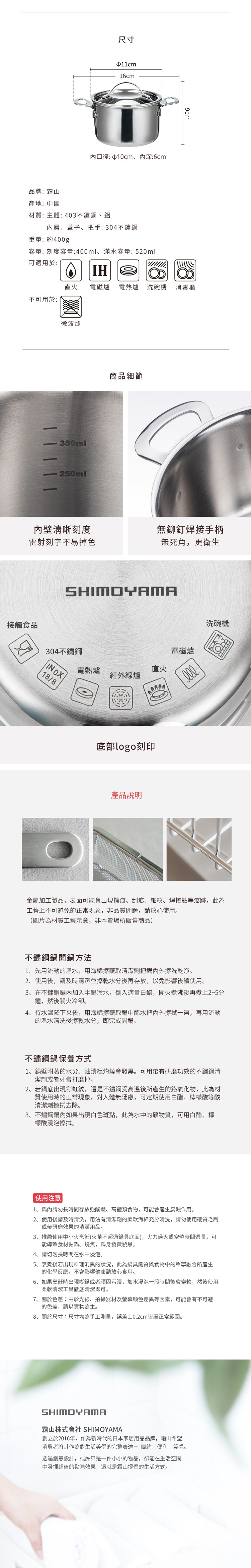 尺寸:長(含手柄)16×高9cm、[鍋口直徑]11cm、[內口徑]10cm、[內深]6cm