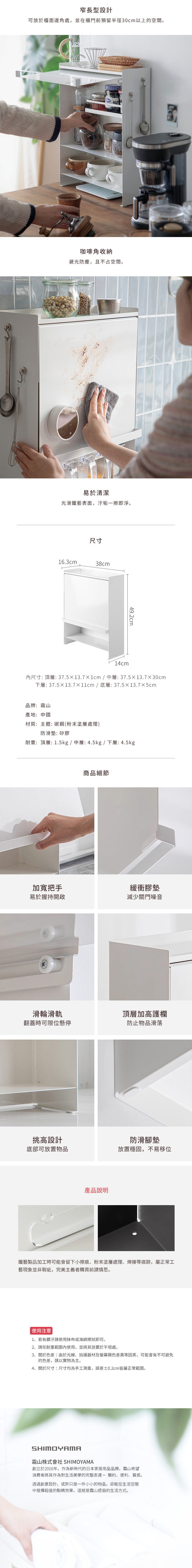 尺寸:寬38×深16.3×高49.2cm、[內部頂層]寬37.5×深13.7×高1cm、[內部中層]寬37.5×深13.7×高30cm、[內部下層]寬37.5×深13.7×高11cm、[底層]寬37.5×深13.7×高5cm