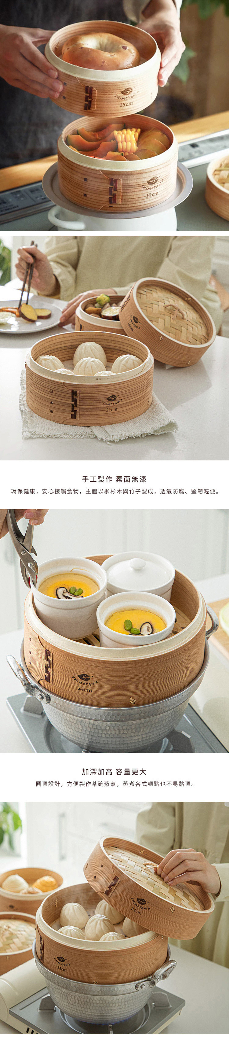 1、每次使用前,請用溫水充分浸潤整個蒸籠後再使用。