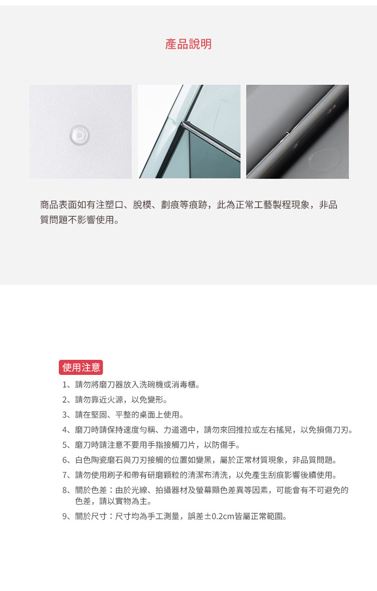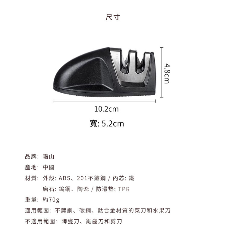 不適用範圍:陶瓷刀、鋸齒刀和剪刀