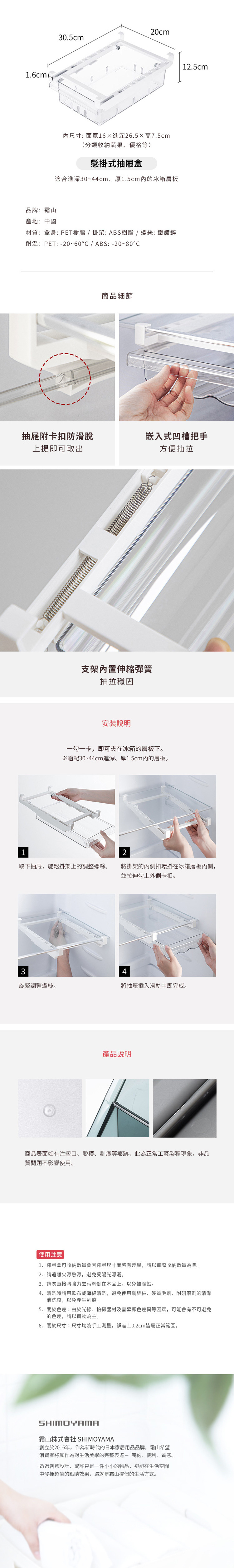 適用於:進深30~44cm、厚1.5cm內的冰箱層板