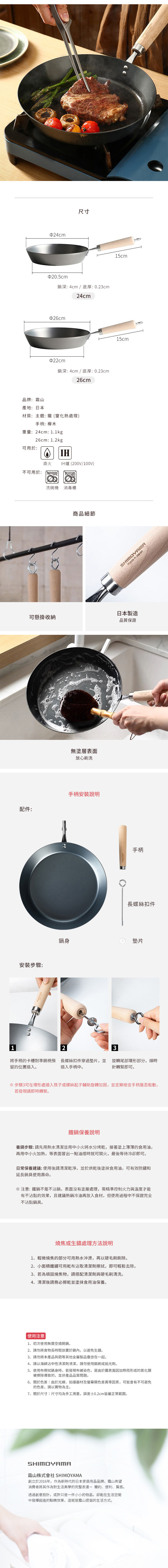 尺寸:直徑24cm、[手柄長度]15cm、[鍋底直徑]20.5cm、[鍋深]4cm、[鍋底厚度]0.23cm