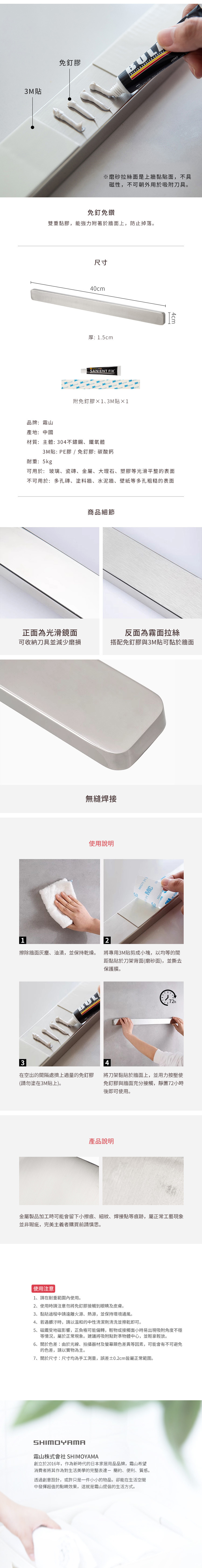 材質:[本體]304不鏽鋼、鐵氧體、[3M貼]PE膠、[免釘膠]碳酸鈣