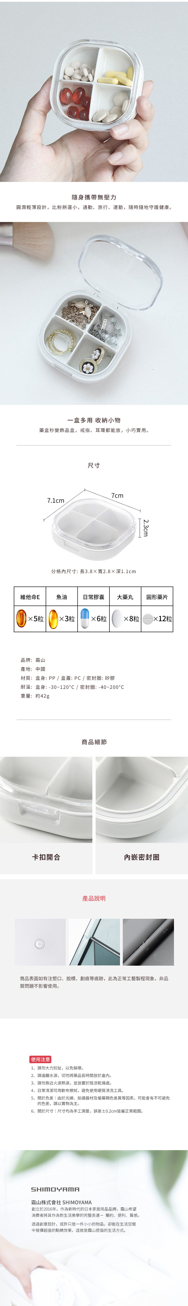 材質:[盒身]PP、[盒蓋]PC、[密封圈]矽膠