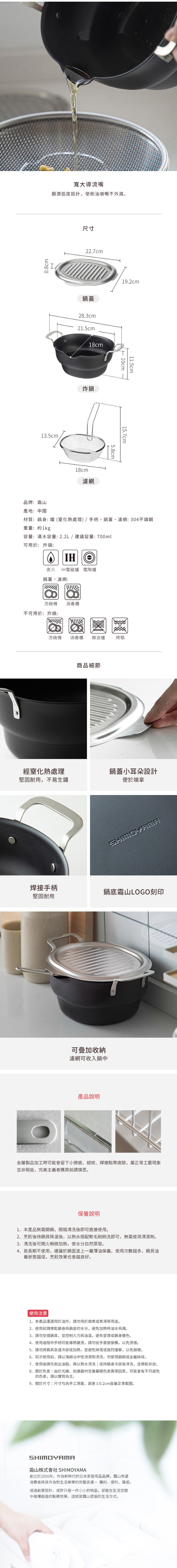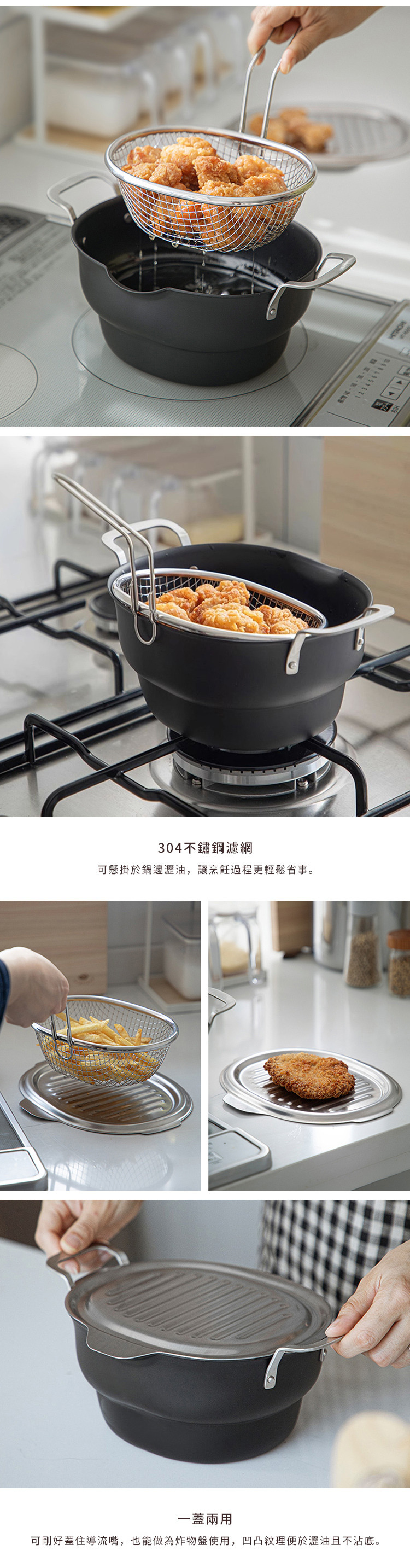 • 【日本霜山】多功能窒化防鏽鐵炸鍋(附濾網&蓋) (IH爐可用)