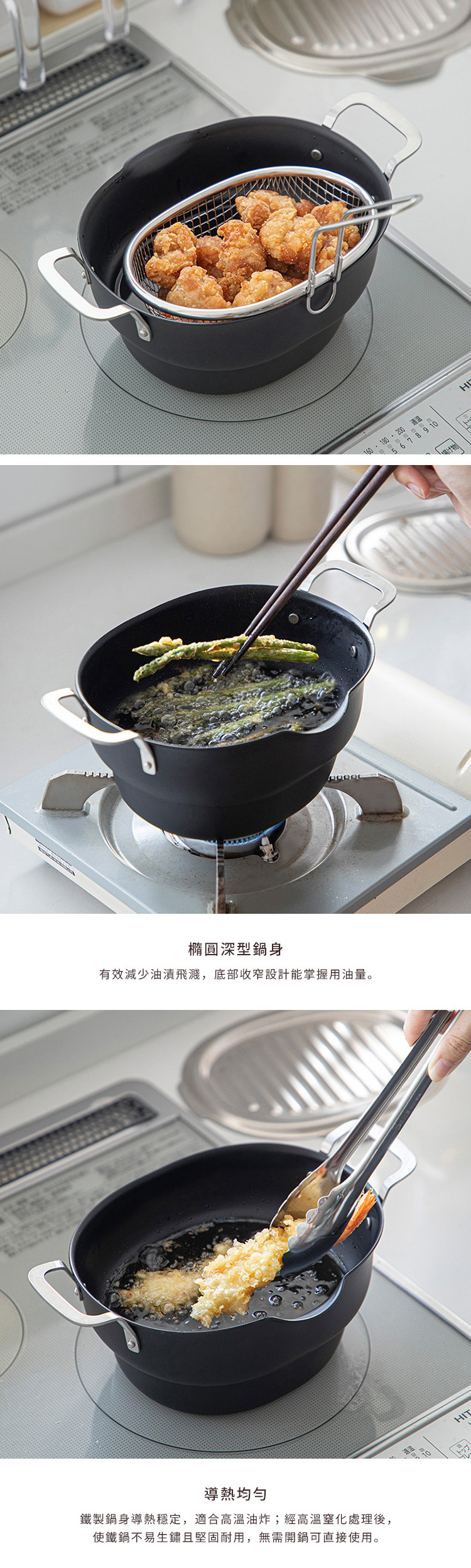 .鐵製鍋體導熱穩定,適合高溫油炸
