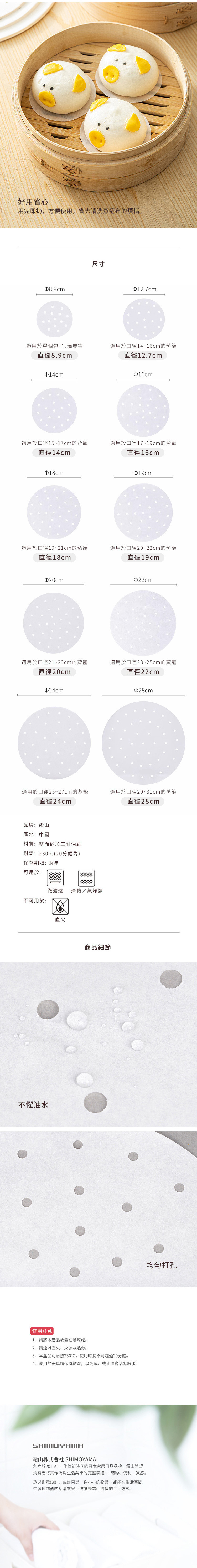 尺寸:直徑8.9cm、直徑12.7cm、直徑14cm、直徑16cm、直徑18cm、直徑19cm、直徑20cm、直徑22cm、直徑24cm、直徑28cm