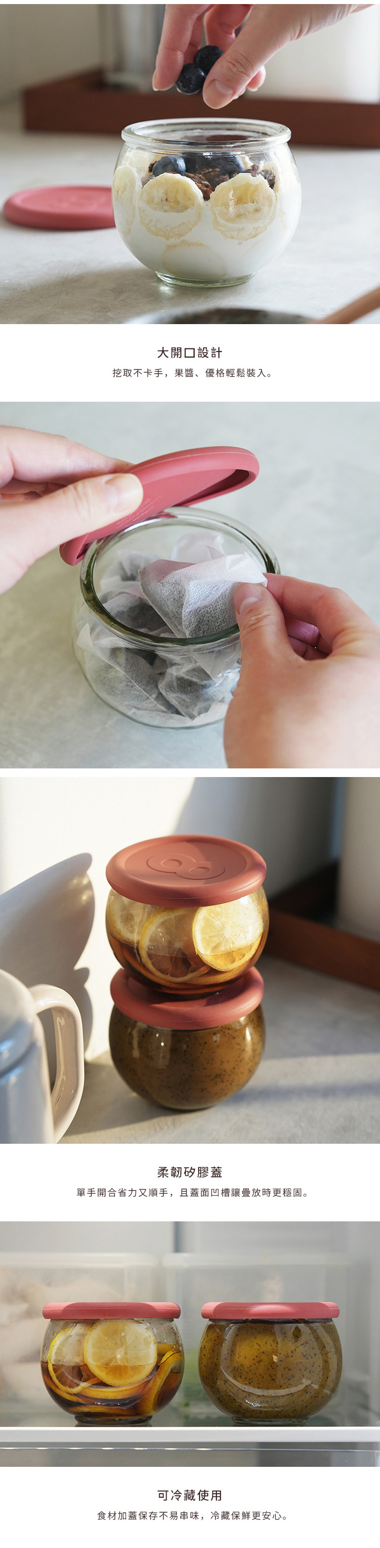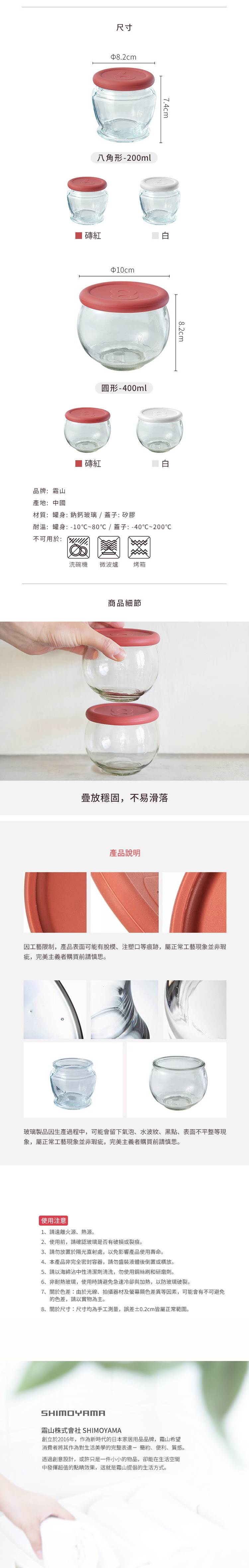尺寸:直徑8.2×高7.4cm 材質:[罐身]鈉鈣玻璃、[蓋子]矽膠 容量:200ml 耐溫:[罐身]-10℃~80℃、[蓋子]-40℃~200℃ 不適用於:洗碗機、微波爐、烤箱 產地:中國 ※尺寸皆為人工測量,誤差±0.2cm屬正常範圍。