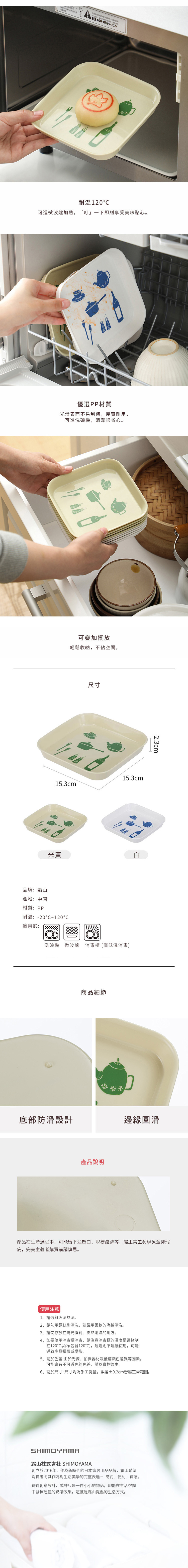 尺寸:長15.3×寬15.3×高2.3cm 材質:PP 耐溫:-20~120℃ 產地:中國 適用於:洗碗機、微波爐、消毒櫃(僅低溫) ※尺寸皆為人工測量,誤差±0.2cm屬正常範圍