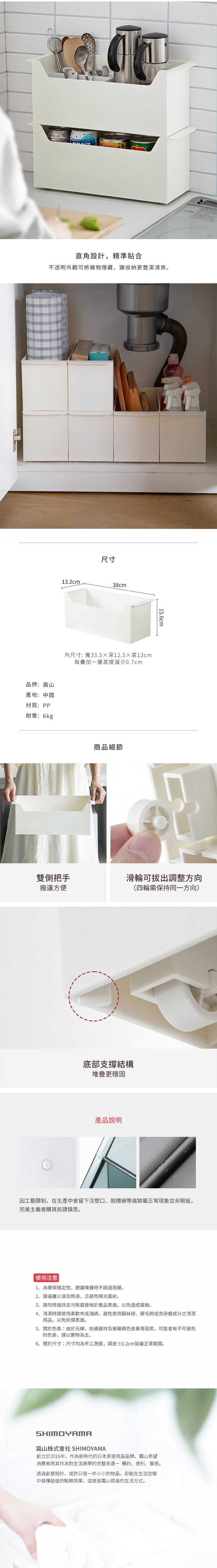 尺寸:長38×寬13.2×高15.6cm、[內尺寸]長33.5×寬12.5×高13cm 材質:PP 耐重:約6kg 產地:中國 ※尺寸皆為人工測量,誤差±0.2cm屬正常範圍。