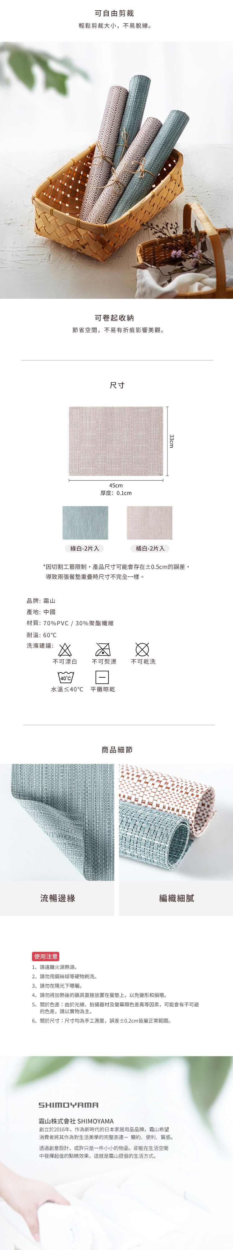 【日本霜山】和風PVC防滑隔熱餐墊(2入/包)x3包-多色可選