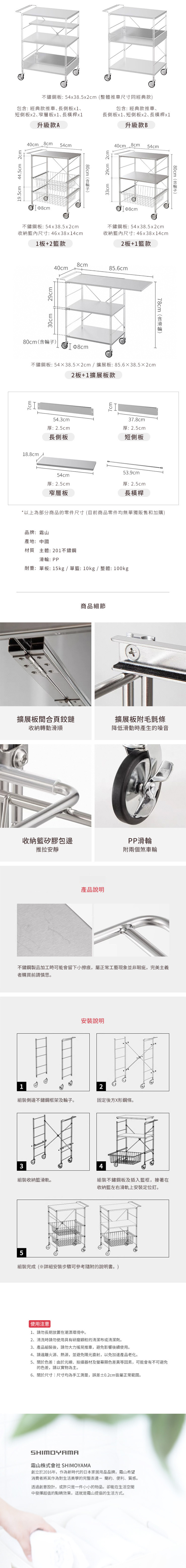 尺寸:[主體]長54×寬40×高80cm(含輪子)、[不鏽鋼板]長54×寬38.5×高2cm、[收納籃內尺寸]46×38×14cm 材質:201不鏽鋼 耐重:100kg 產地:中國 ※尺寸皆為人工測量,誤差±0.2cm屬正常範圍。