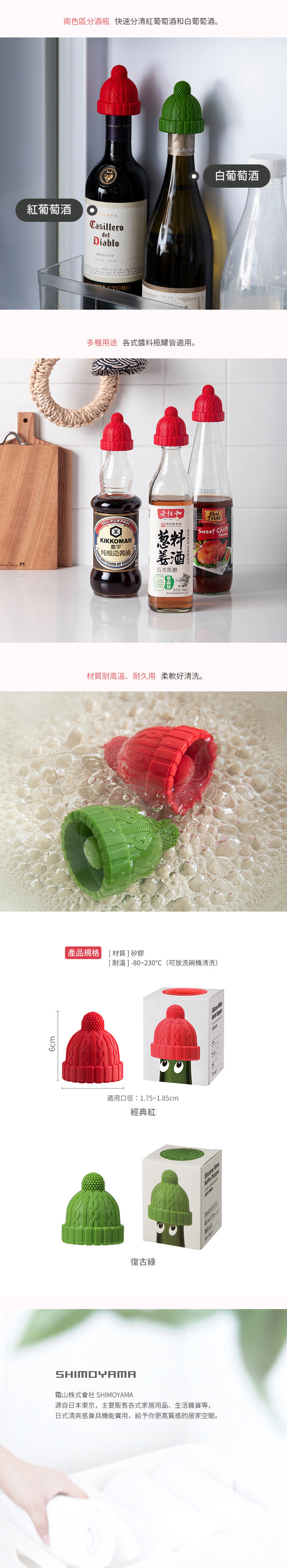 尺寸:(約)直徑5x高6cm 材質:矽膠 耐溫:-80°C~230°C 適用於:口徑1.75~1.85cm的瓶口 ※尺寸皆為人工測量,誤差±2cm屬正常範圍