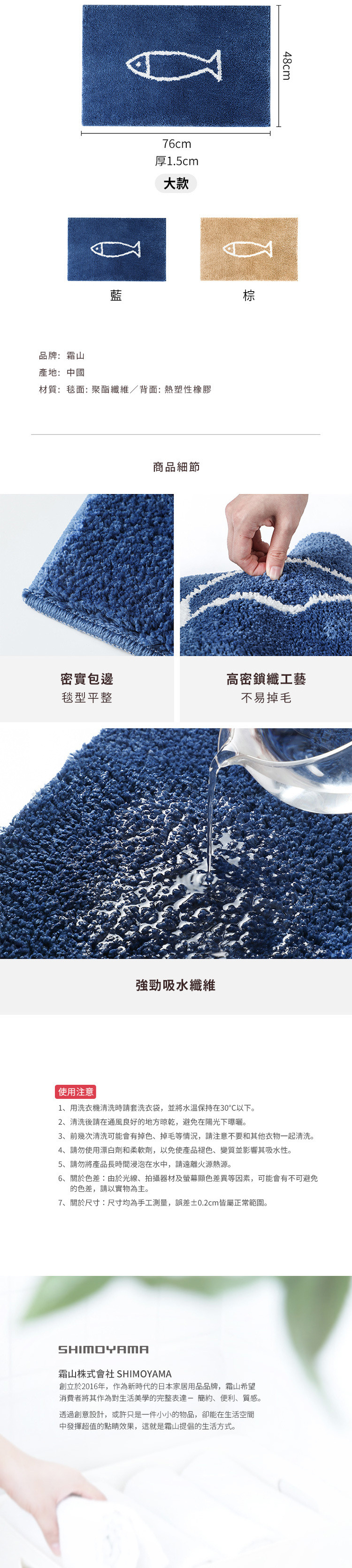 尺寸:長65×寬45×厚1.5cm 材質:[毯面]聚酯纖維、[背面]熱塑性橡膠 產地:中國 ※尺寸皆為人工測量,誤差±0.2cm屬正常範圍。