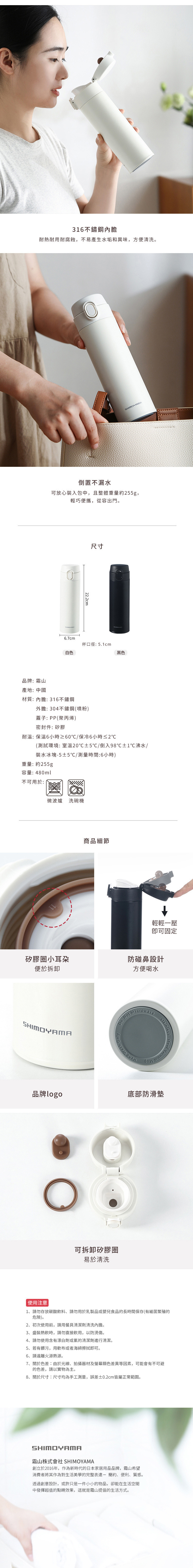 材質:[內膽]316不鏽鋼、[外膽]304不鏽鋼(噴粉)、[蓋子]PP(聚丙烯)、[密封件]矽膠