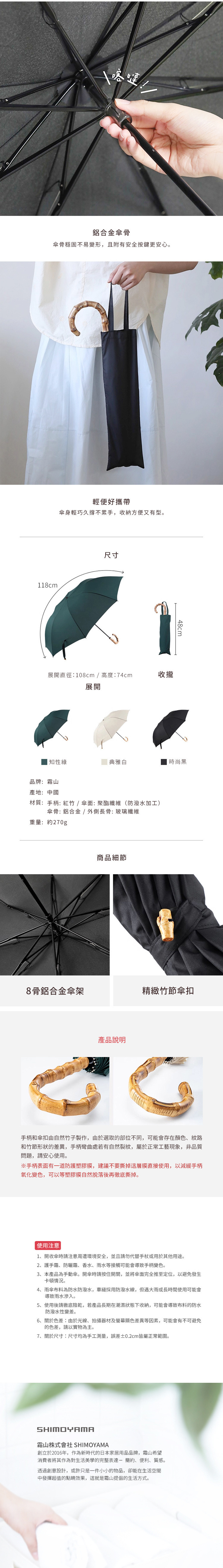 尺寸:[展開]直徑108×高74cm、[收攏]高48cm 材質:[傘面]聚酯纖維(防潑水處理)、[傘骨]鋁合金、玻璃纖維、[手柄]紅竹 重量:約270g 產地:中國 ※尺寸皆為人工測量,誤差±0.2cm屬正常範圍。