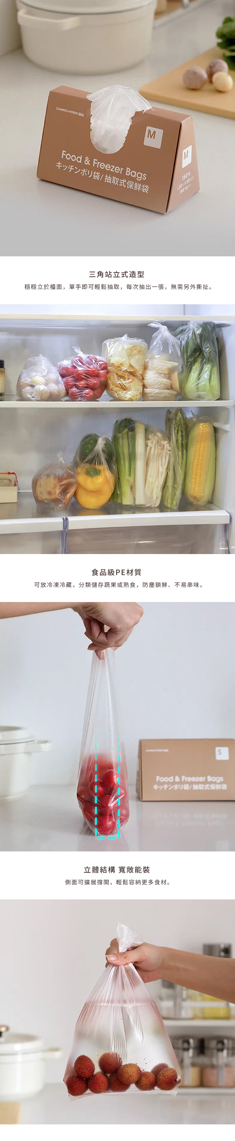尺寸:[保鮮袋]寬20×高30cm、[外盒]長18×寬8×高10.4cm 材質:聚乙烯 耐溫:-30°C ~ 110°C 不適用於:沸水烹煮、微波爐、烤箱 產地:中國 ※尺寸皆為人工測量,誤差±0.2cm屬正常範圍。