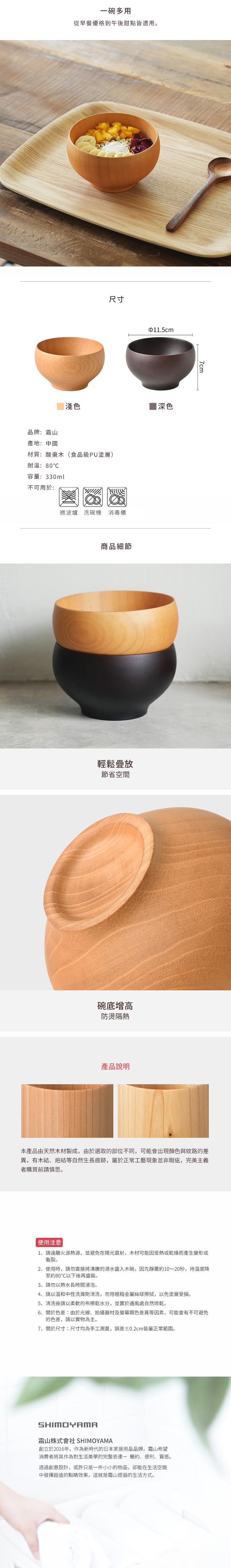 尺寸:寬11.5×高7cm 材質:酸棗木(食品級PU塗層) 耐溫:80℃ 容量:330ml 不適用於:微波爐、洗碗機、消毒櫃 產地:中國 ※尺寸皆為人工測量,誤差±0.2cm屬正常範圍。