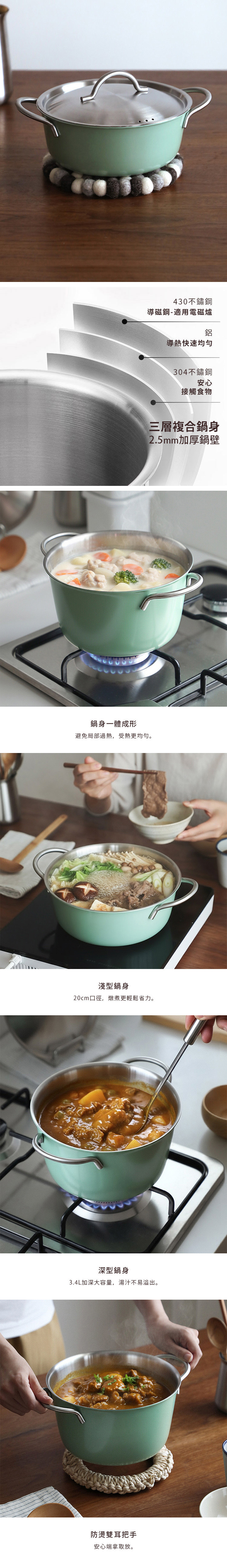材質:[鍋體]430不鏽鋼(陶瓷外塗層)、鋁、304不鏽鋼、[鍋蓋]304不鏽鋼、[蓋柄、手柄]201不鏽鋼