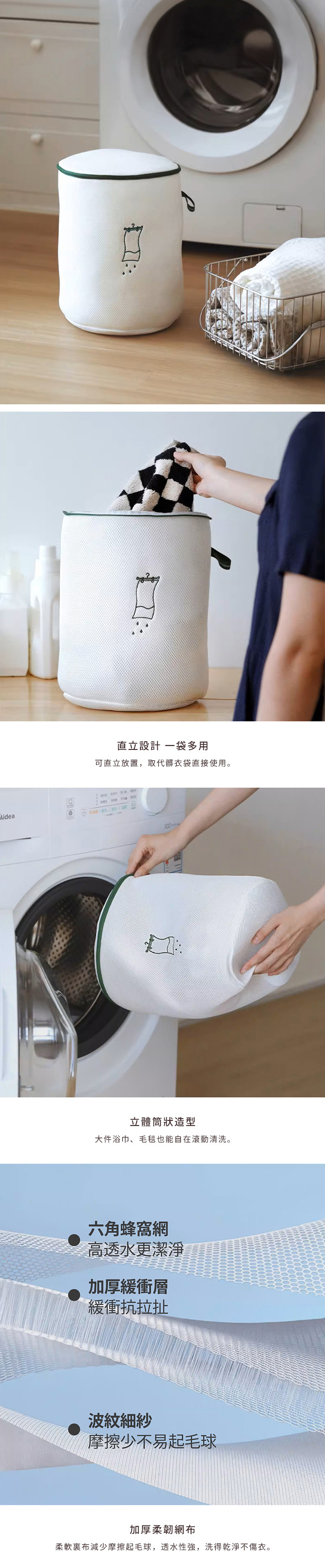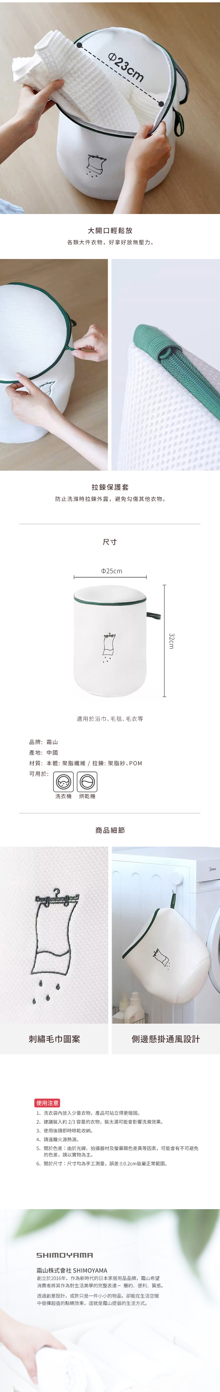 尺寸:直徑25×高32cm 材質:[主體]聚酯纖維、[拉鍊]聚酯紗、POM 適用於:洗衣機、烘乾機 產地:中國 ※尺寸皆為人工測量,誤差±0.2cm屬正常範圍。