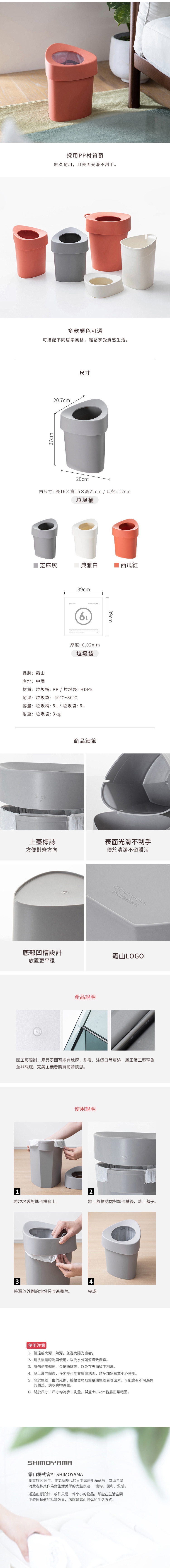 [垃圾桶]長20.7×寬20×高27cm、[內徑]長16×寬15×高22cm、[口徑]12cm