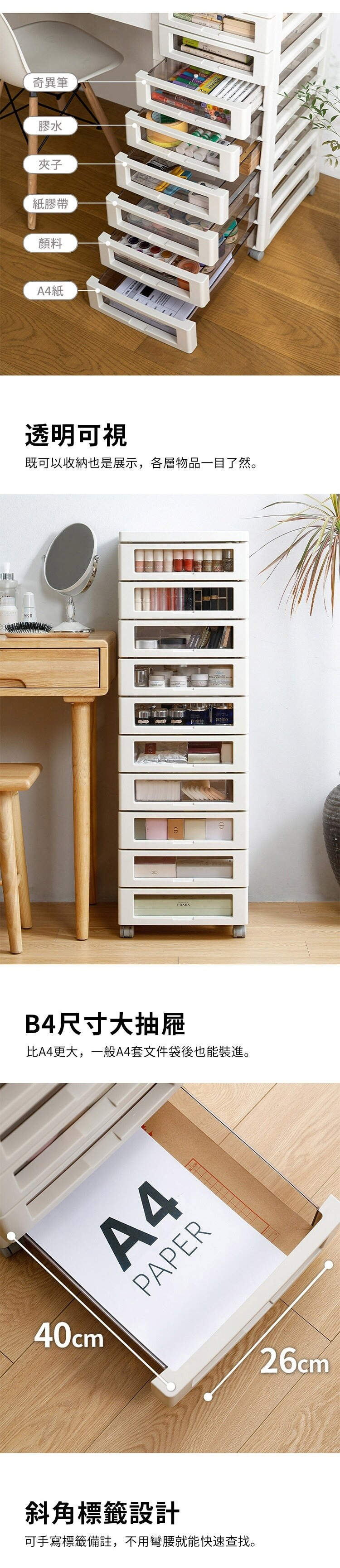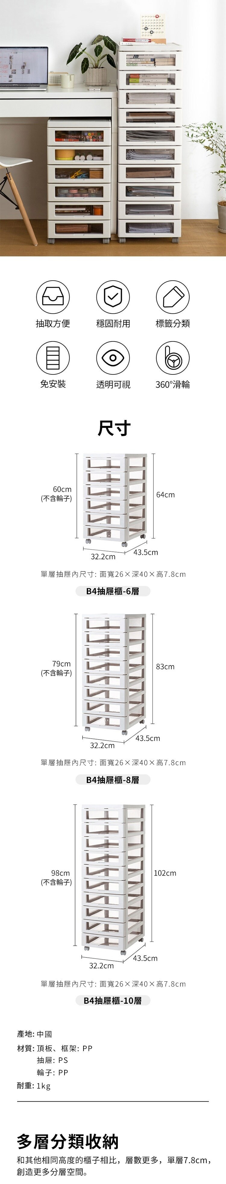 材質:[頂板、框架、輪子]PP、[抽屜]PS