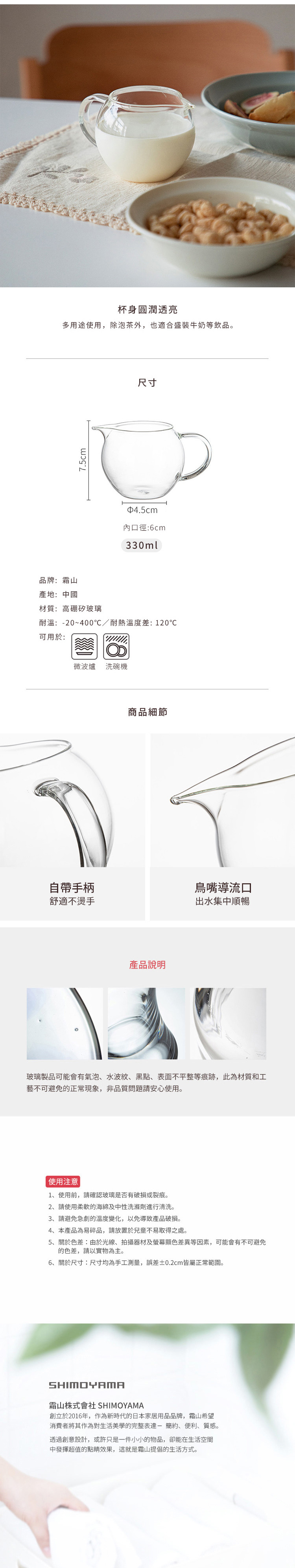 尺寸:直徑4.5×高7.5cm、[內口徑]6cm 材質:高硼矽玻璃 耐溫:-20~400℃(耐熱溫差120℃) 容量:330ml 適用於:微波爐、洗碗機 產地:中國 ※尺寸皆為人工測量,誤差±0.2cm屬正常範圍。