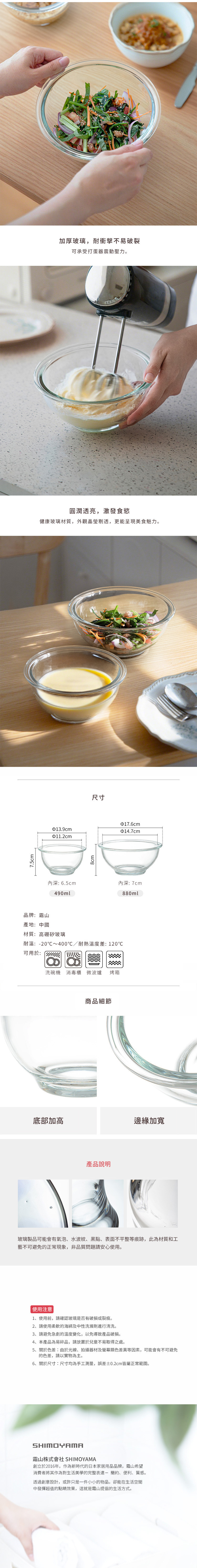 【日本霜山】耐熱玻璃調理碗/沙拉碗二件組(490ml+880ml)