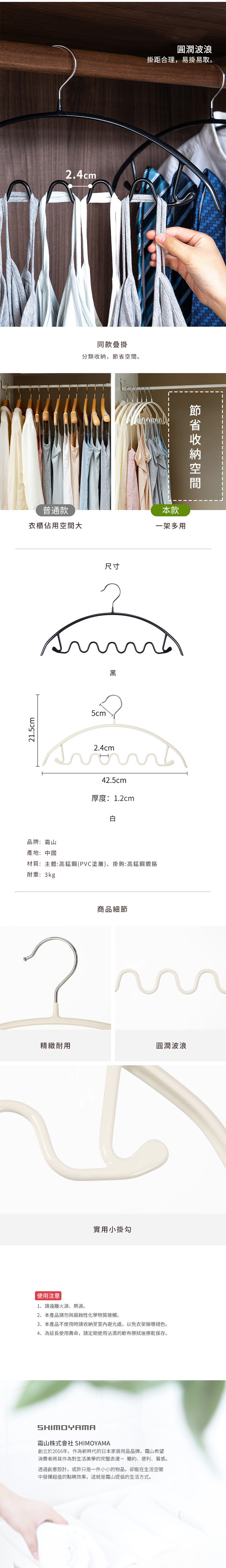 • 【日本霜山】防滑無痕型多功能波浪衣架-6入