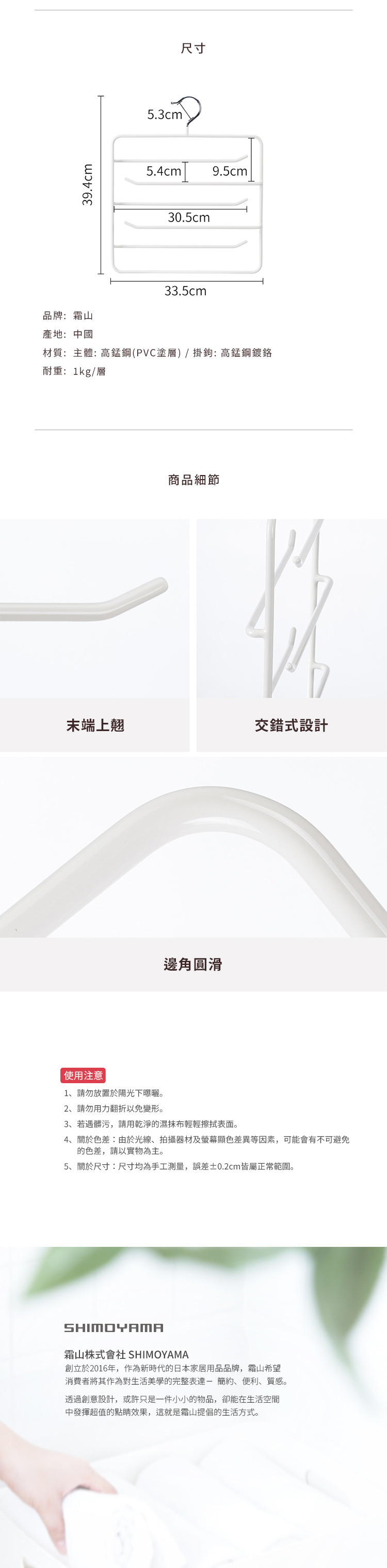 尺寸:寬33.5×高39.4cm 材質:[主體]高錳鋼(PVC塗層)、[掛鉤]高錳鋼鍍鉻 耐重:1kg/層 產地:中國 ※尺寸皆為人工測量,誤差±0.2cm屬正常範圍