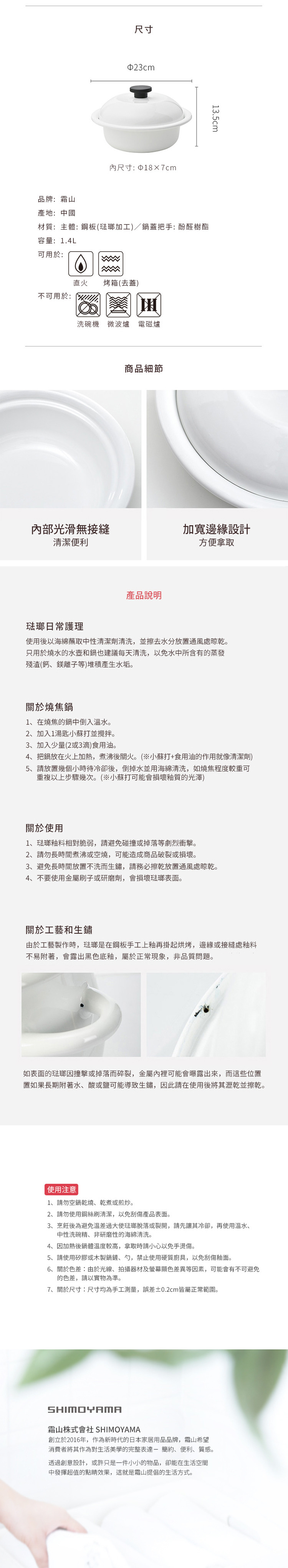 材質:[主體]鋼板(琺瑯加工)、[鍋蓋把手]酚醛樹脂