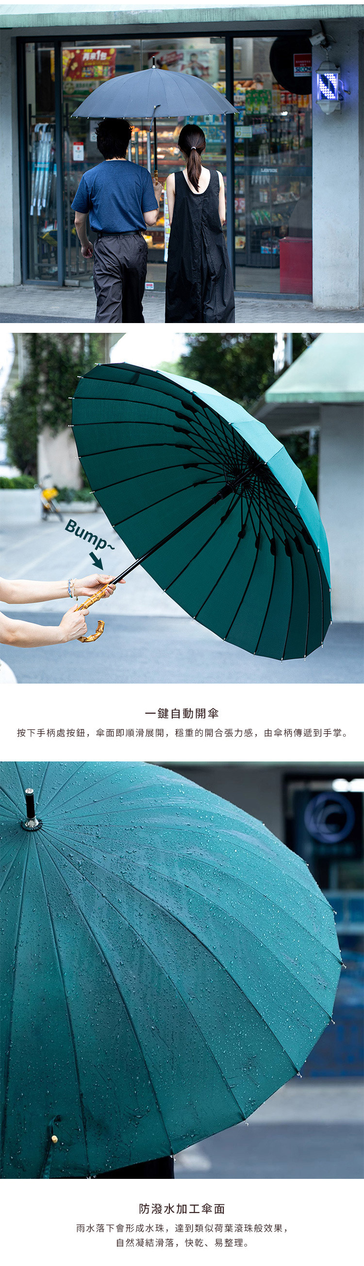 • 【日本霜山】24骨防風大傘面晴雨兩用竹柄自動傘-多色可選