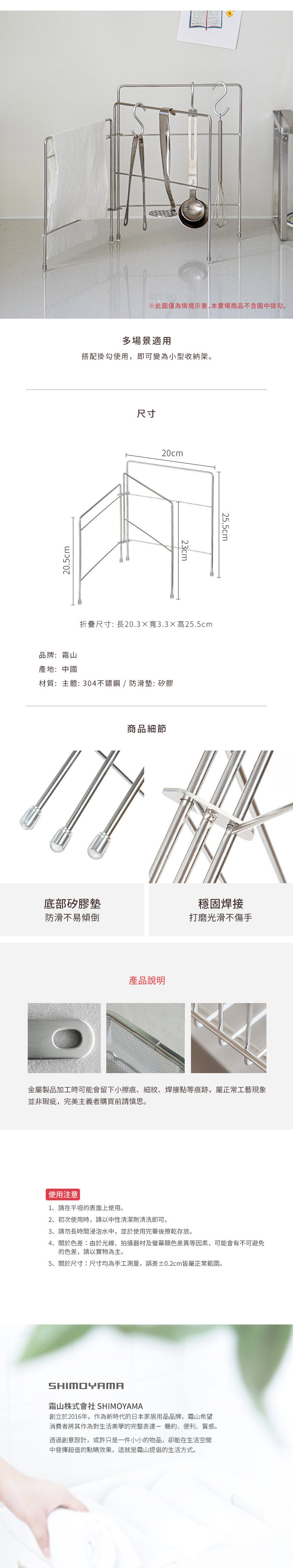 • 【日本霜山】304不鏽鋼三摺抹布架/折疊置物架