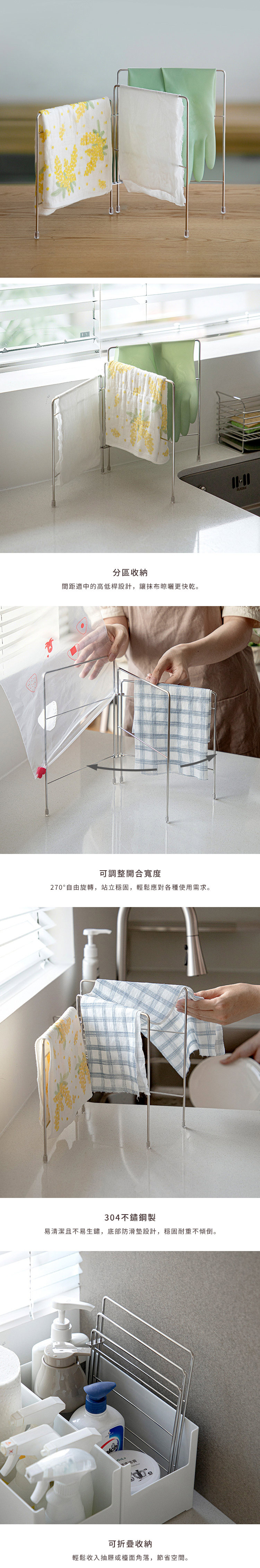 .掛桿高低差設計,抹布晾曬更快乾