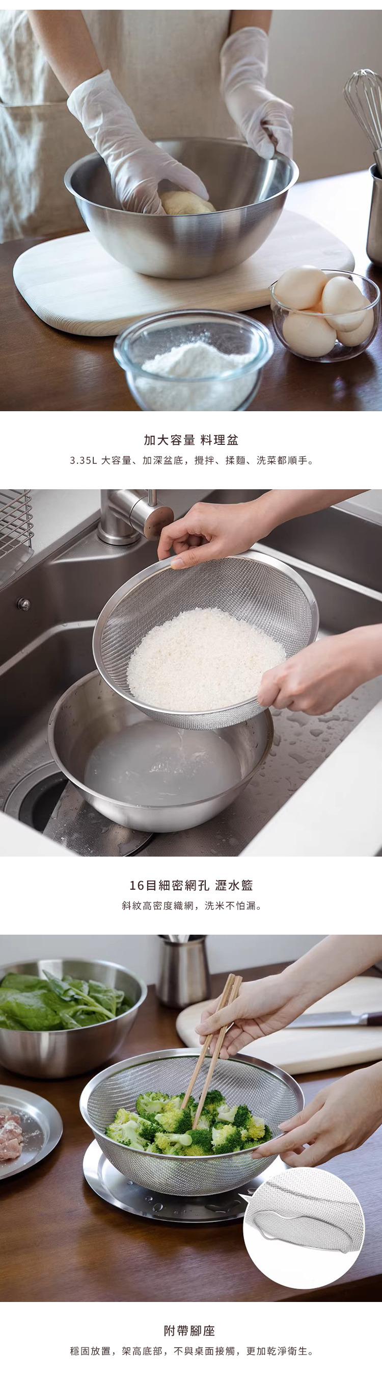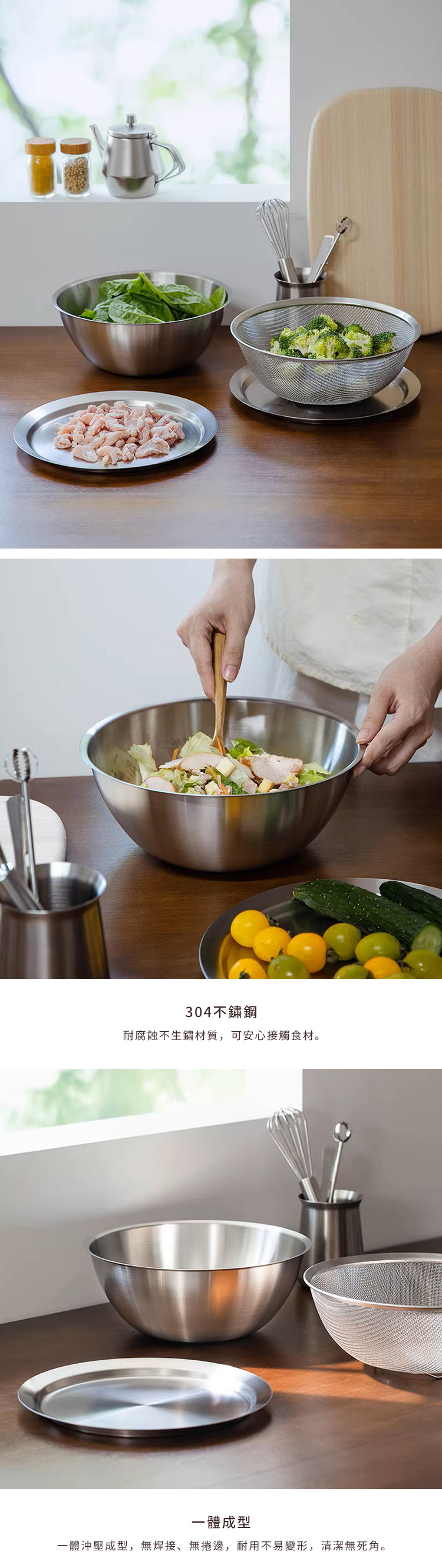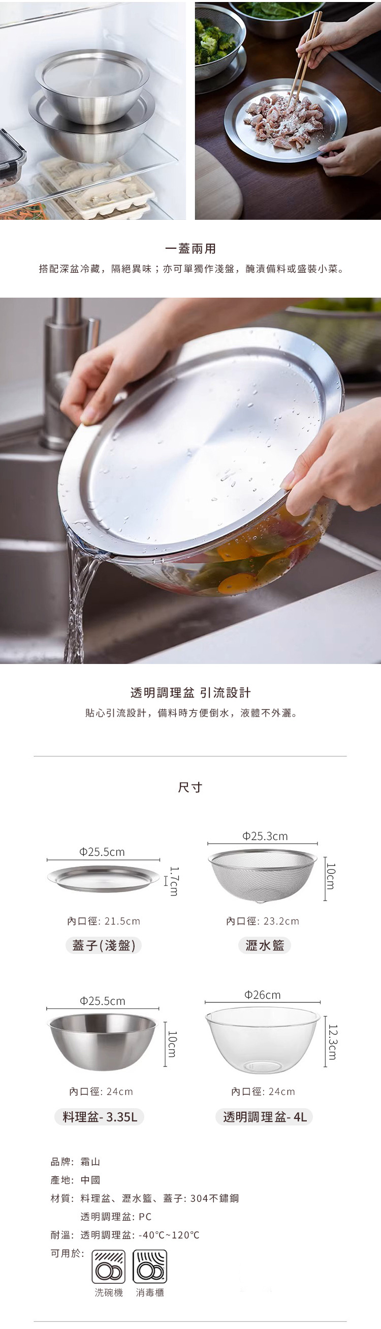 材質:[料理盆、瀝水籃、蓋子]304不鏽鋼、[透明調理盆]PC