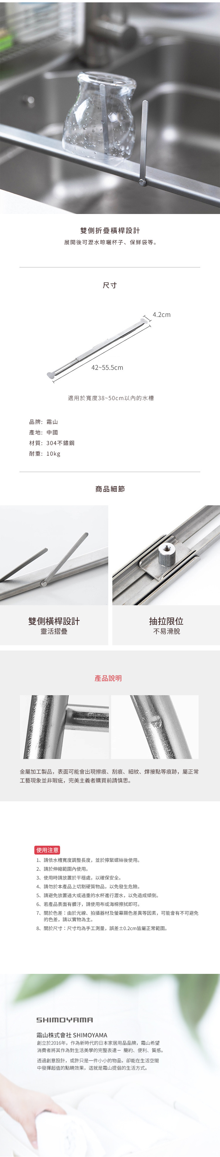 尺寸:長42~55.5×寬4.2cm 材質:304不鏽鋼 耐重:10kg 產地:中國 ※尺寸皆為人工測量,誤差±0.2cm屬正常範圍。