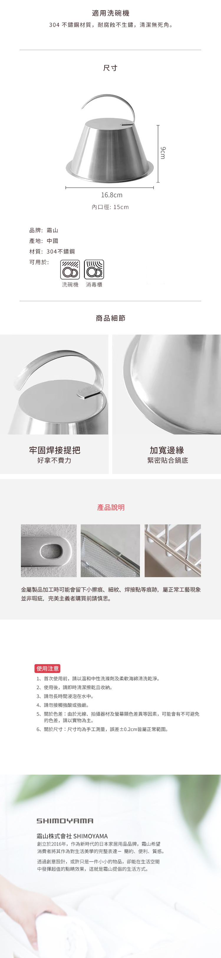 尺寸:直徑16.8×高9cm、[內口徑]15cm 材質:304不鏽鋼 適用於:洗碗機、消毒櫃 產地:中國 ※尺寸皆為人工測量,誤差±0.2cm屬正常範圍。