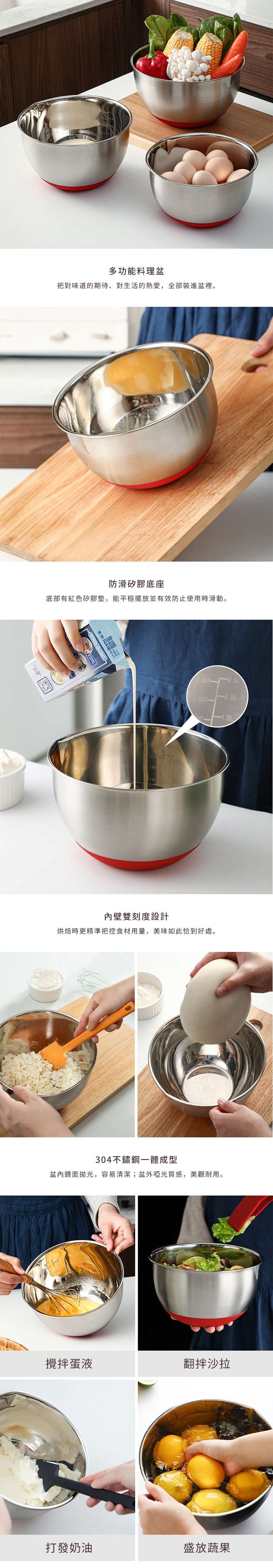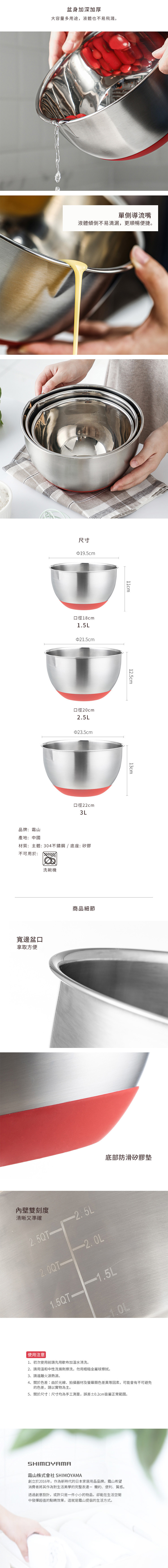 尺寸:直徑19.5×高11cm、[口徑]18cm 材質:[主體]304不鏽鋼、[底座]矽膠 產地:中國 不適用於:洗碗機 ※尺寸皆為人工測量,誤差±0.2cm屬正常範圍。
