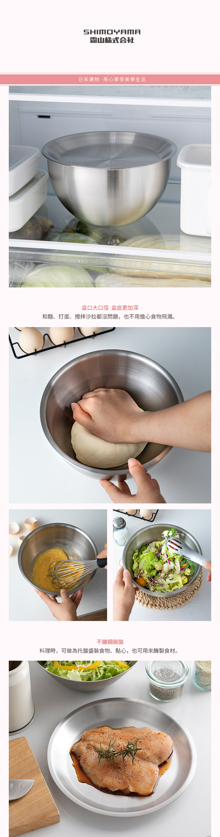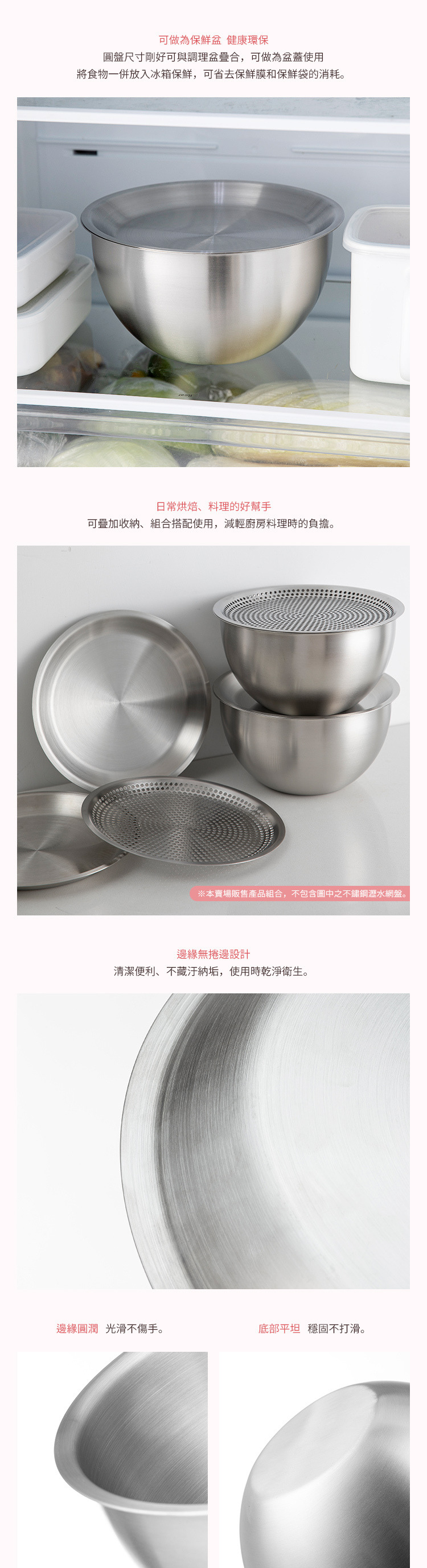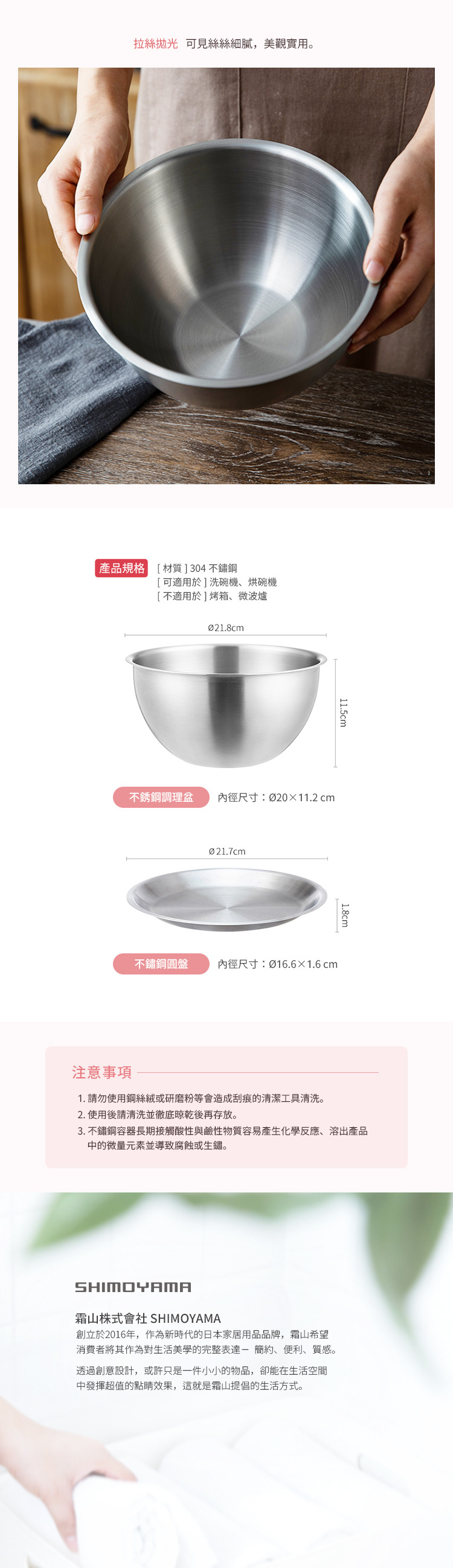 尺寸:[調理盆]直徑21.8x高11.5cm(內徑:直徑20x高11.2cm)、[圓盤]直徑21.7x高1.8cm(內徑:直徑16.6x高1.6cm)