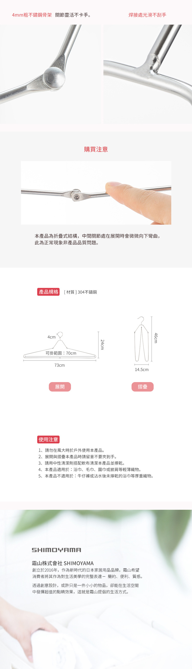 尺寸: 展開:(約)寬73x高24cm 摺疊:(約)寬14.5x高46cm 材質:304不鏽鋼 產地:中國 ※尺寸皆為人工測量,誤差±0.2cm屬正常範圍