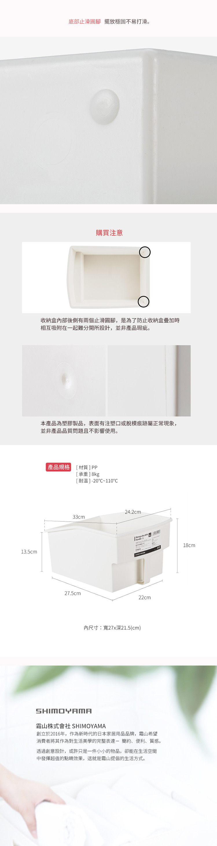 尺寸:長27.5x寬22x高18cm 內尺寸:27x21.5cm 材質:PP 承重:8kg 耐溫:-20°C~110°C 產地:中國 ※尺寸皆為人工測量,誤差±0.2cm屬正常範圍