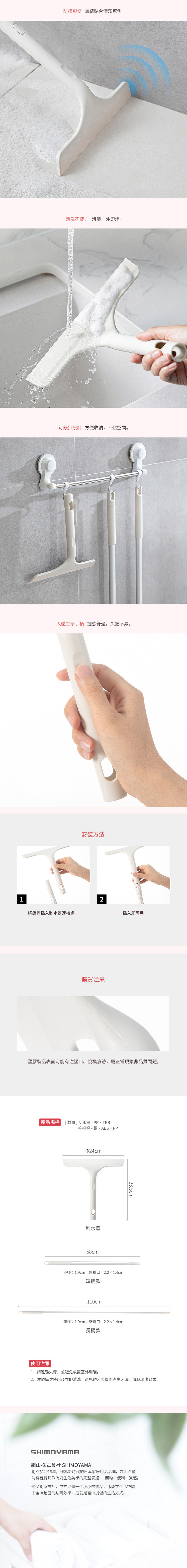 尺寸:[刮水器]直徑24×長23.5cm,[拖把桿]直徑1.9×長58cm 材質:[刮水器]PP、TPR,[拖把桿]鋁、ABS、PP 產地:中國 ※尺寸皆為人工測量,誤差±0.2cm屬正常範圍