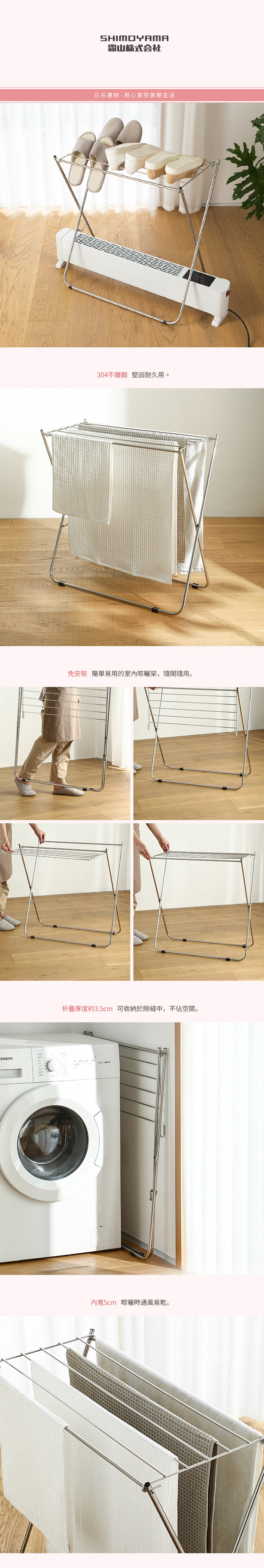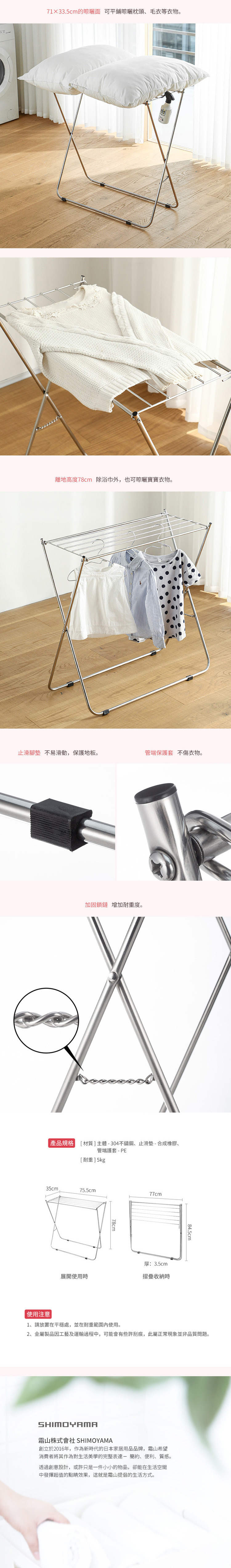 展開使用時尺寸:寬75.5×深35×高78cm 摺疊收納時尺寸:寬77×厚3.5×高84.5cm 材質:[主體]304不鏽鋼、[止滑墊]合成橡膠、[管端護套]PE 耐重:5kg 產地:中國 ※尺寸皆為人工測量,誤差±0.2cm屬正常範圍