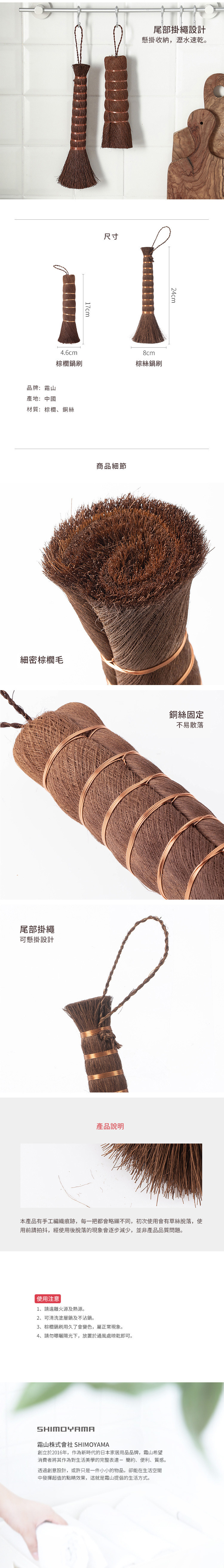 尺寸:[棕櫚鍋刷]直徑4.6x長17cm、[棕絲鍋刷]直徑8x長24cm 材質:棕櫚、銅絲 產地:中國 ※尺寸皆為人工測量,誤差±0.2cm屬正常範圍