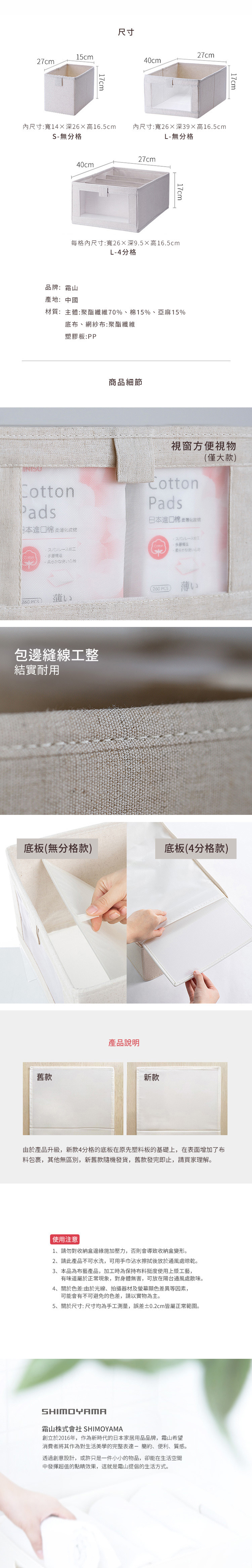 尺寸:[外徑]寬27×深40×高17cm、[內徑]寬26×深39×高16.5cm 材質:[主體]聚酯纖維70%、棉15%、亞麻15%、[底部/網紗布]聚酯纖維、[塑膠板]PP 產地:中國 ※尺寸皆為人工測量,誤差±0.2cm屬正常範圍。