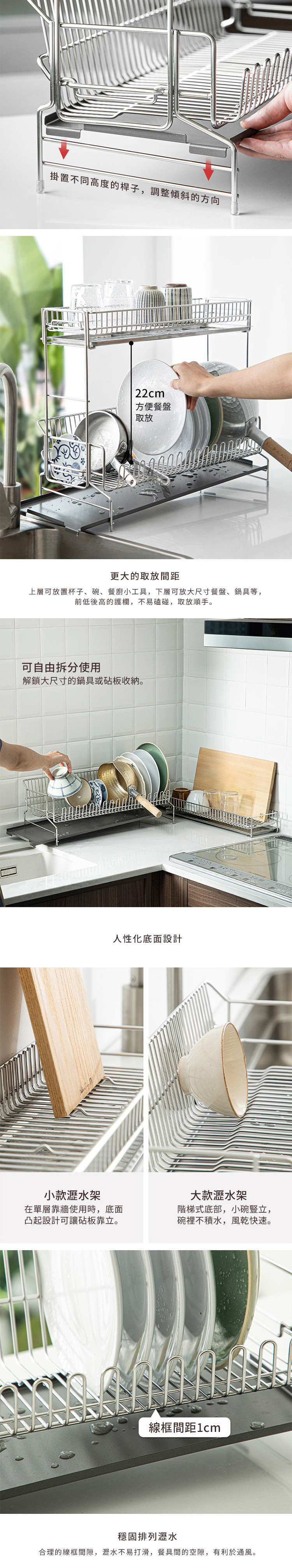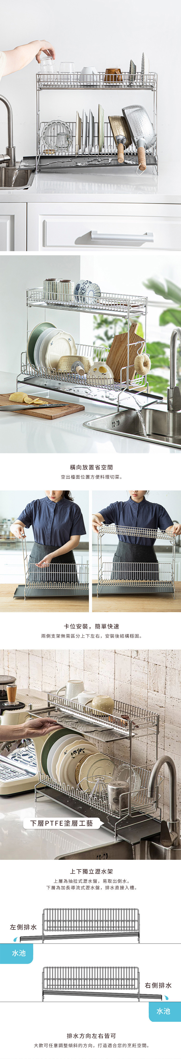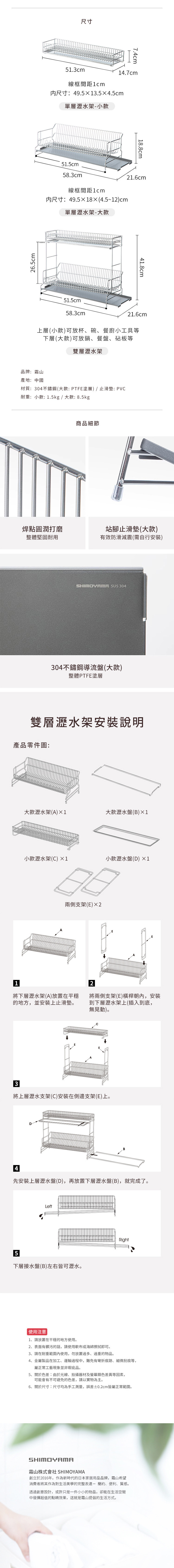 尺寸:長58.3×寬21.6×高41.8cm 材質:304不鏽鋼(PTFE塗層)、PVC 耐重:[上層]1.5kg、[下層]8.5kg 產地:中國 ※尺寸皆為人工測量,誤差±0.2cm屬正常範圍。